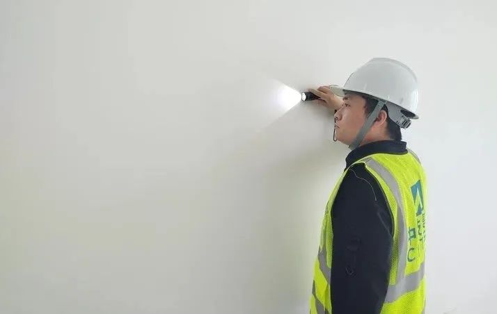 他的工作与瓷砖、腻子、水泥打交道,需要时刻手拿靠尺、角尺等检测工具对项目乳胶漆墙面进行实测实量;手拿空鼓锤对现场墙砖进行空鼓排查,对每个部位全面排查、查找隐患,保证施工质量。这样的检测动作,每天要重复上千次,就是为了优质履约,为业主提供一个安全住所。