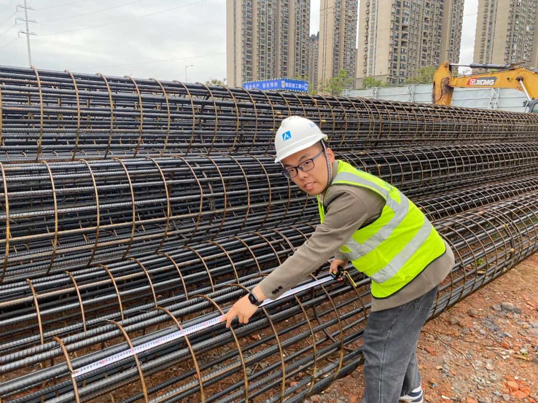 在面对主筋间距允许偏差在10mm内、箍筋间距和螺旋筋间距要控制在20mm以内、钢筋笼长度应控制在50mm以内等诸多桩基钢筋笼验收要求时,他对每一个检测验收项目认真负责,确保同时满足钢筋成本可控和设计要求,同时保证测量结果的准确和可靠,超出项目管理目标预期。