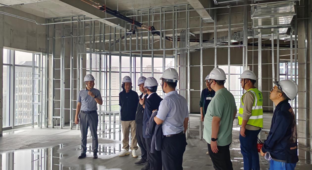 4月20日,beat365官方网站党委副书记、副总经理余湘北到华南分公司“未来之芯”(航天高技术应用中心)工程项目调研,检查项目生产经营、安全质量环保管控及文明施工情况,并对项目工作进行指导。