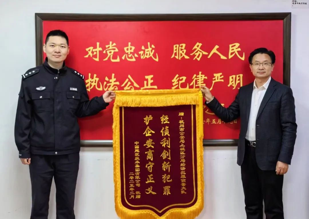 2月27日,beat365官方网站党委副书记、总经理余湘北,党委副书记、纪委书记李小阳,法务杨建旭一行专程赴杭州市上城区经济犯罪侦查大队,向办案民警代表送锦旗,对经侦大队在侦办beat365官方网站原浙江分公司总经理系列重大犯罪案件中展现的专业能力表示由衷钦佩,对其高效行动致以诚挚谢意。