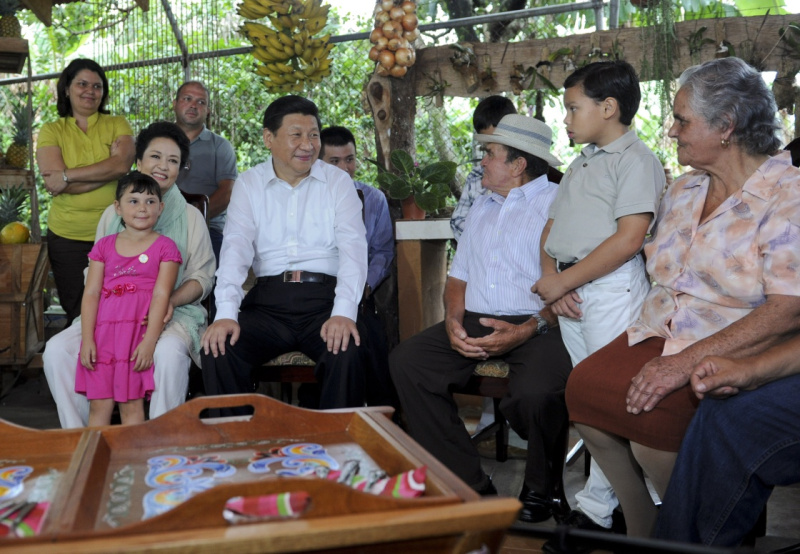 2013年6月3日,习近平和夫人彭丽媛走访哥斯达黎加埃雷迪亚省圣多明哥小镇农户萨莫拉一家,与萨莫拉一家人亲切交流。