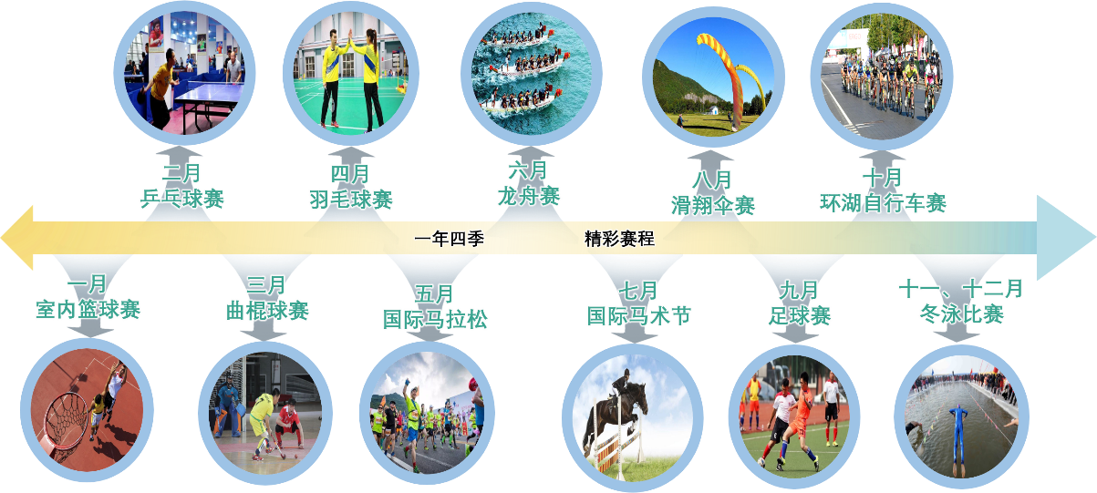 2.4.运动赛事:结合国家加快发展健身休闲产业的指导意见、体育运动名录及小镇建设,打造灰汤体育小镇,布局如足球、马术、自行车(东鹜山环道及环湖自行车道)、环湖田径马拉松、游泳、赛艇、龙舟赛、击剑、射箭、射击(室内)、太极、广场舞、攀岩、竞走等运动项目,结合各已开发项目布置全民休闲运动项目,打造湖南省赛事运动基地。