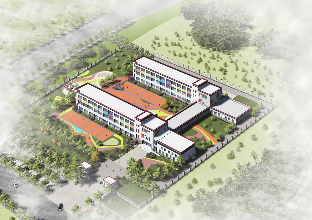 项目概述,校园设计以60个班为基础,规划高一至高三教学楼及综合实验楼,学生宿舍和教师公寓;配套标准400米跑道操场和室外运动场。