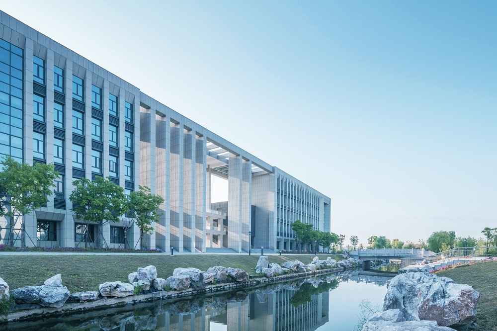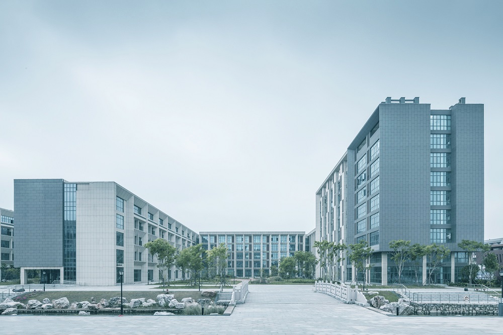 绿色建筑设计理念贯穿整体设计。建筑景观一体化设计:各教学楼设置屋顶绿化,与水体景观相互呼应,形成赏心悦目的景观阶梯,塑造满足现代教学要求的整体式景观建筑群落。被动式设计:建筑采用适应当地气候条件的平面形式及总体布局,利用导风墙、廊架、架空、绿色材料设计,使建筑各组成部分尽可能以自然的方式运行,降低建筑能耗。