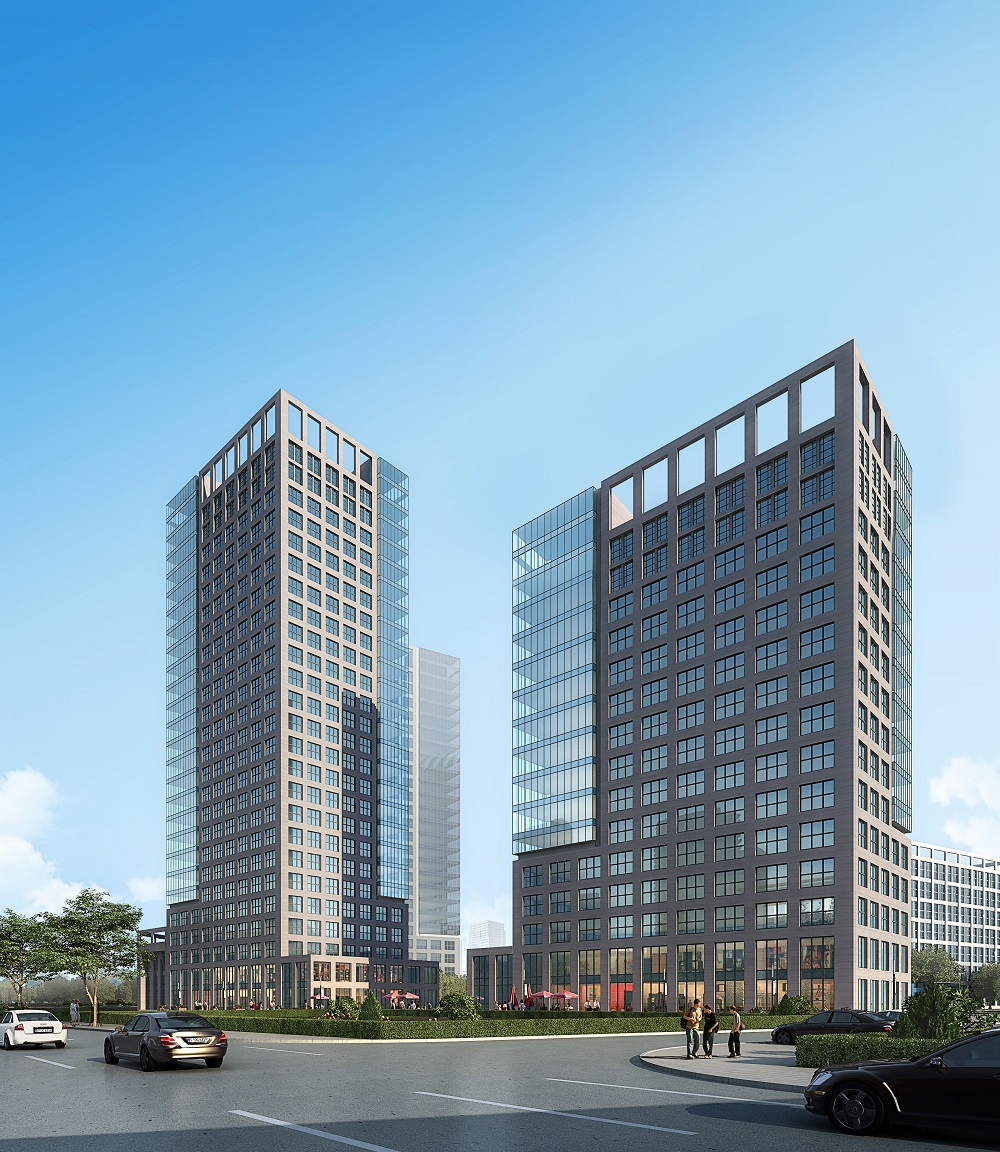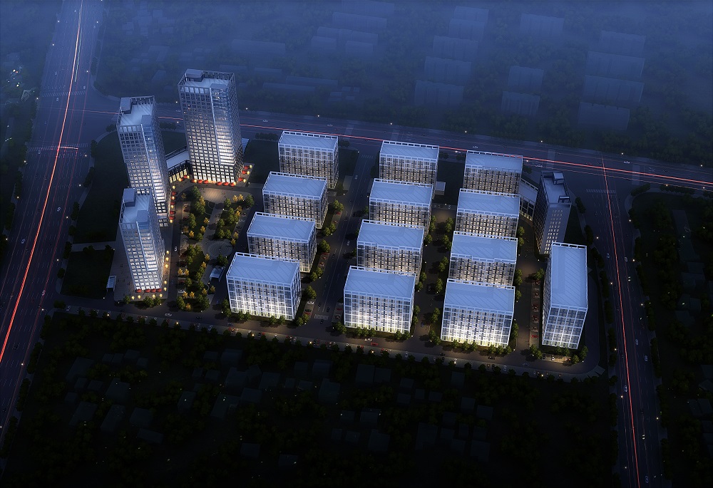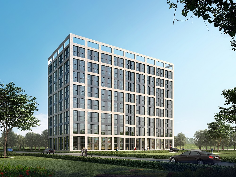 场地&建筑规划整体构思清晰简练, 需要与整个片区的形象保持一致性——稳重大方,同时需要丰富整个园区的形象。项目的外在形象重在展示现代孵化园(加速器)科研性、生产性的外在形象,力求以新材料组合的简洁的现代主义风格唤起观者对孵化园(加速器)的联想,体现本项目的研发生产主题的前提下,本次设计在统一中寻求变化。厂房分为7层、8层、9层,多以矩形为主,垂直交通核心分布在四边,简洁高效,中间的大空间办公可分可合,满足各种生产空间需求。