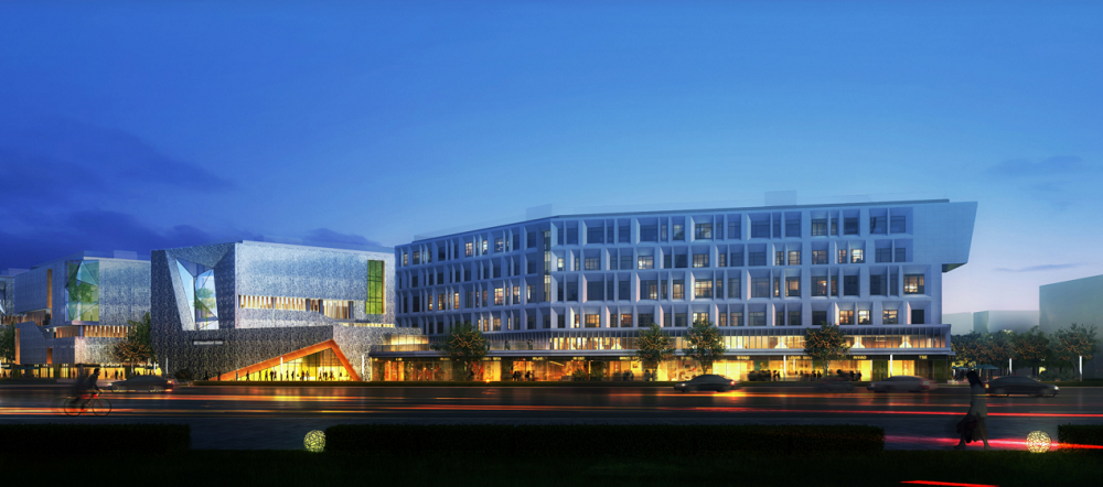 项目用地南高北低,东高西低,项目整体布局与城市空间紧密结合,通过一横四纵的商街与景观廊道,塑造连续的城市界面与区域标示性建筑形象。场地共设置主要人行出入口和车行出入口各两处,分别设置在场地内西北方向及东向,场地内实现人车分流,保证交通流畅性。场地内建筑群落可分为3部分,分别是1#楼五星级酒店新建建筑、办公改造建筑群(2-2#楼、3-2#楼、4-2#楼、6-2#楼)、商旅酒店改造建筑群(2-1#楼、3-1#楼、4-1#楼、5#楼、6-1#楼)。